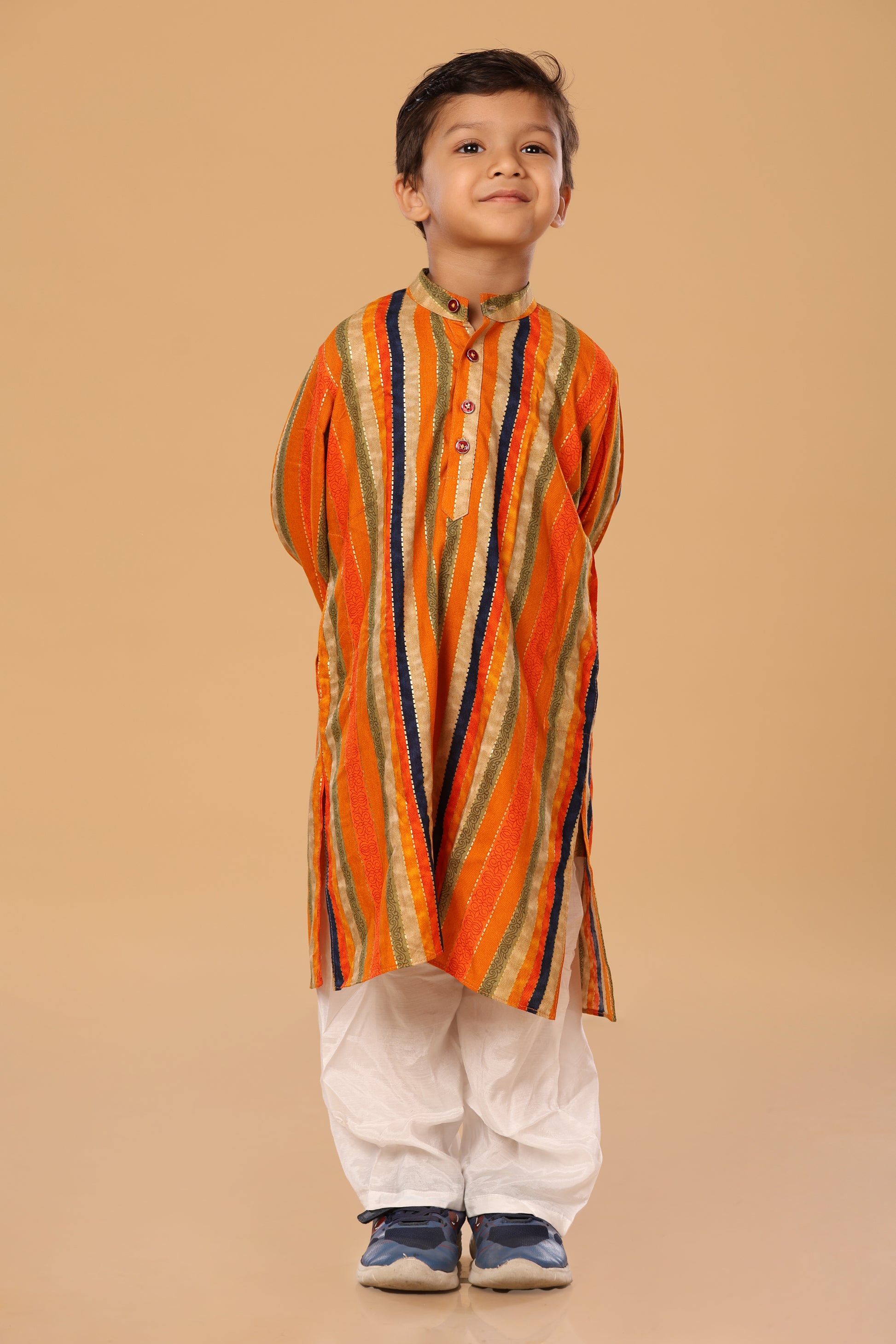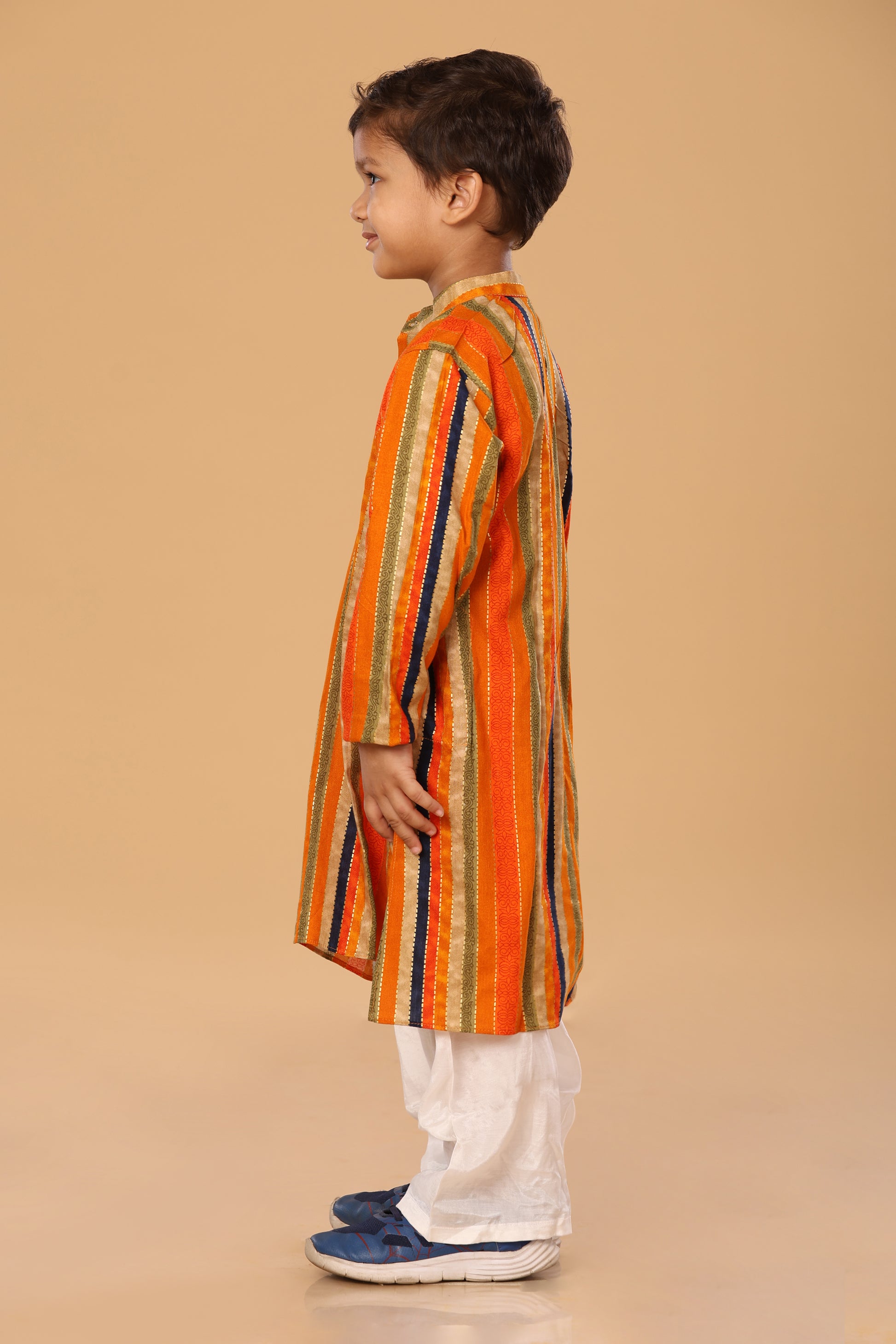 Elevate his dressed-up look with classic kurta silhouette with round collar neck.