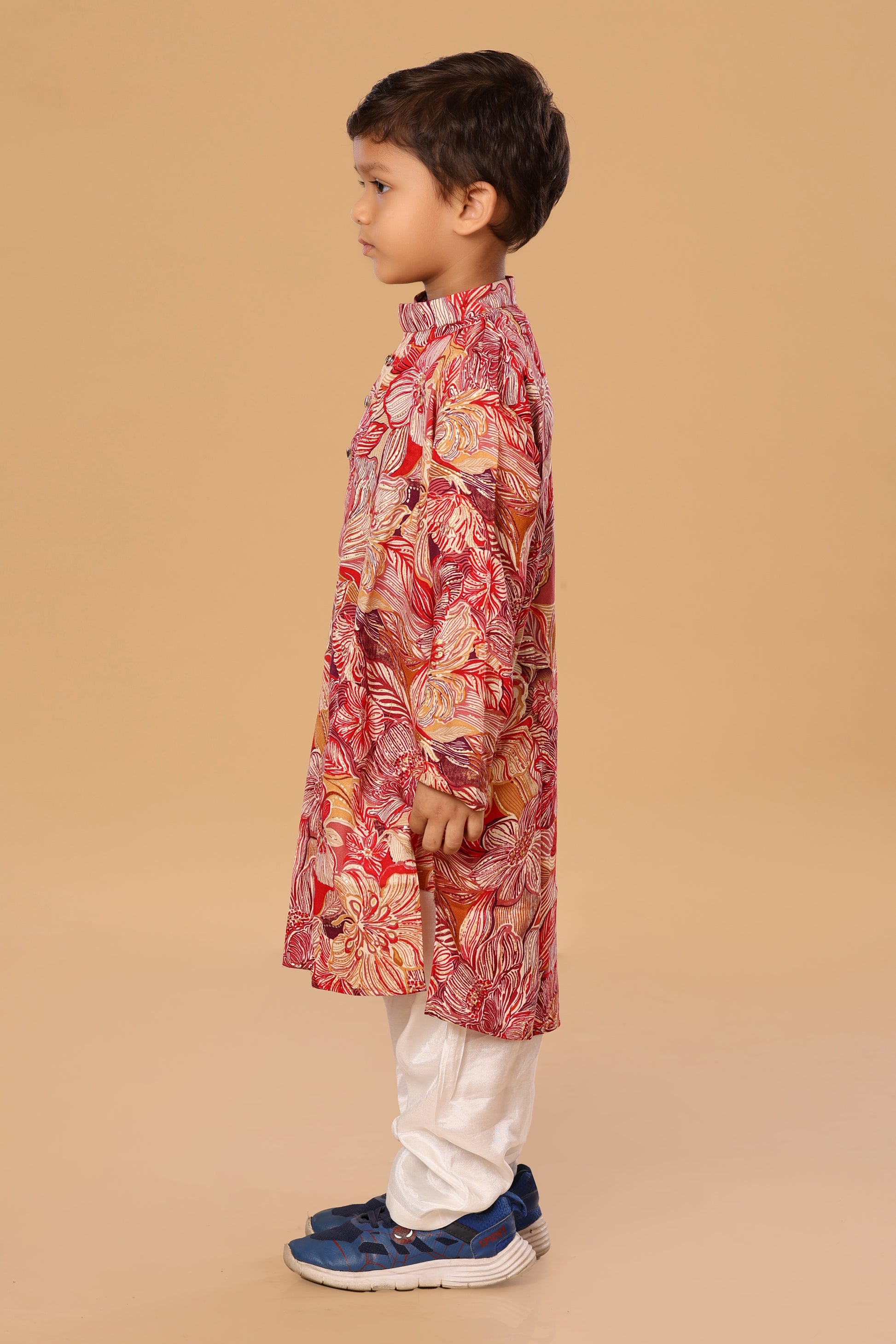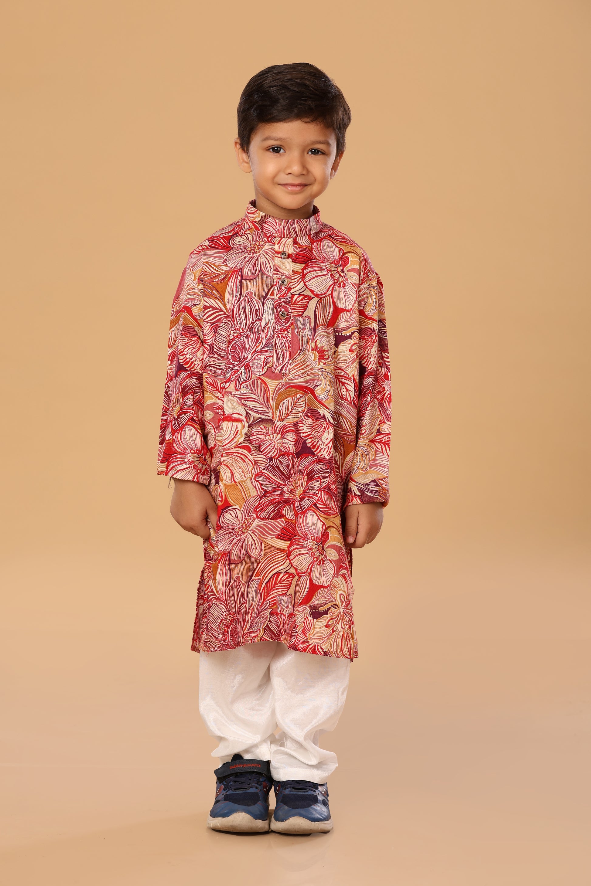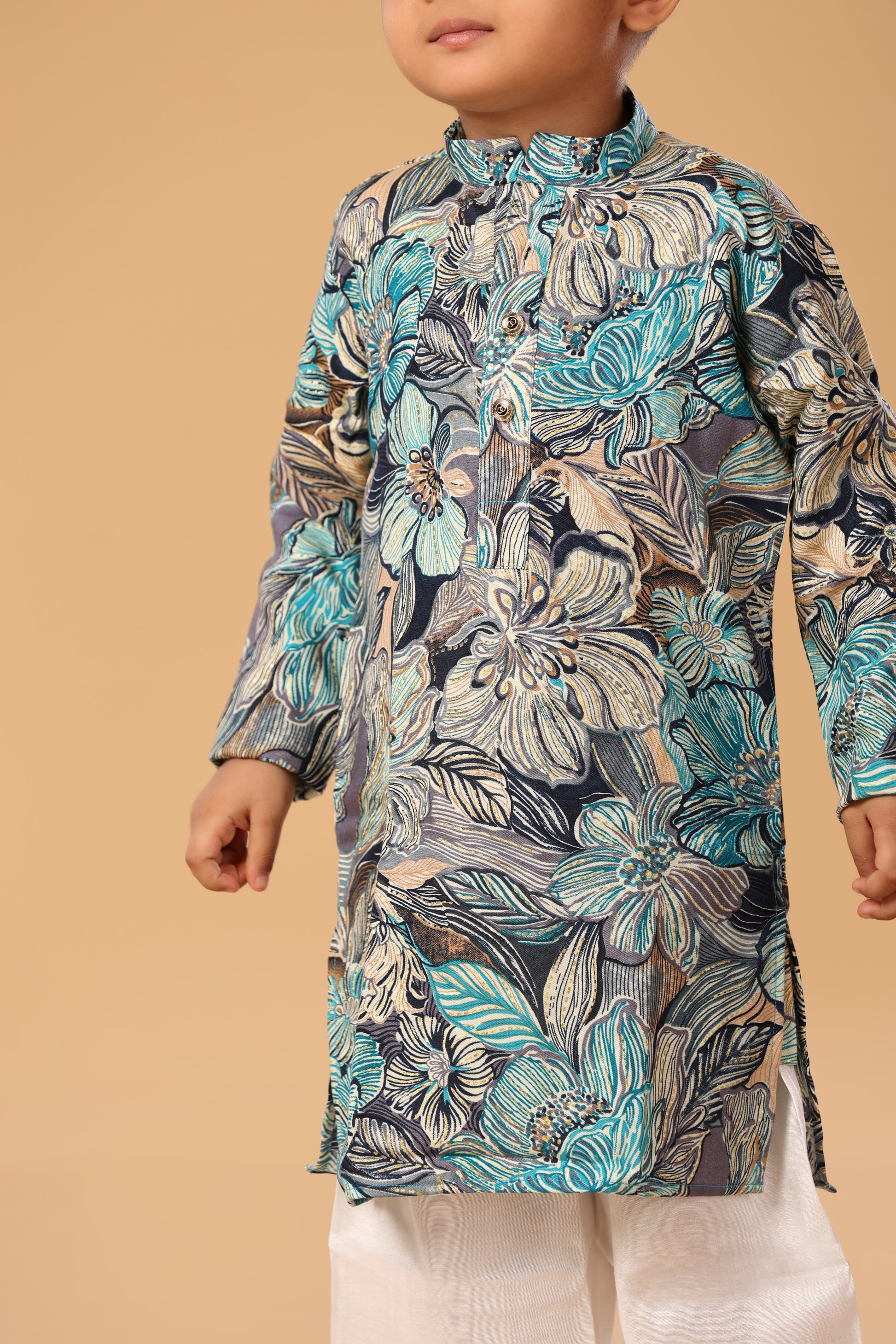 Elevate his dressed-up look with classic kurta silhouette with round collar neck.